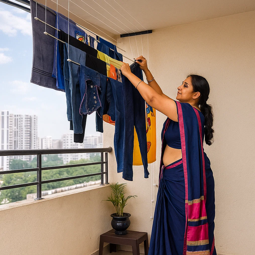 Using a balcony cloth hanger is effortless and efficient—helping you dry clothes smartly without cluttering your living space.