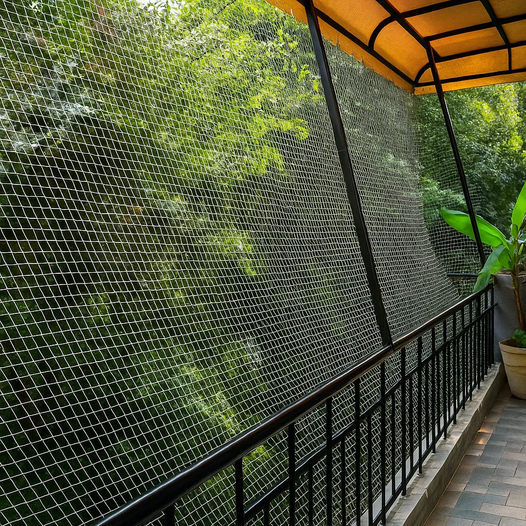 This is the most common (and essential) place. Open balconies are pigeon hotspots – perfect for nesting and dirtying your beautiful space. A pigeon net here acts as a barrier that protects your privacy and cleanliness, without blocking air or light.