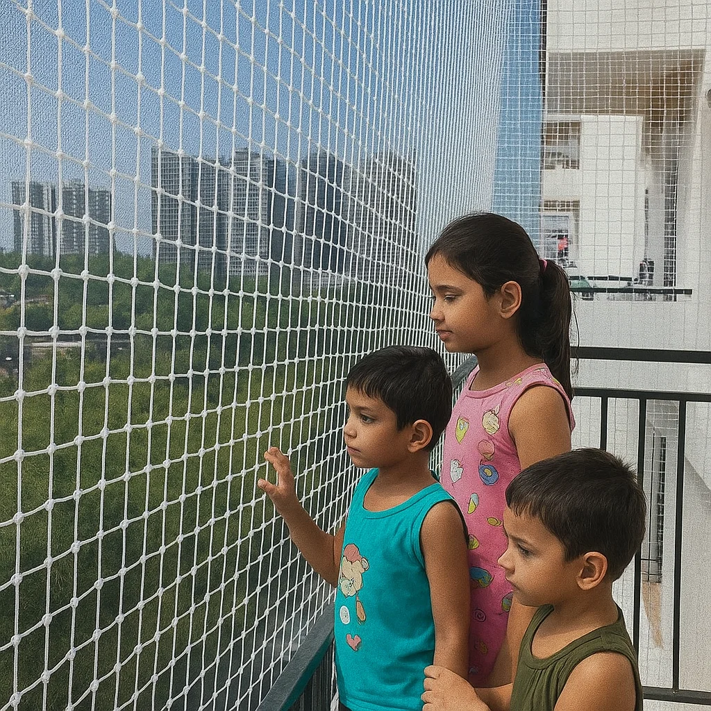 Made from fine, nearly invisible monofilament nylon — ideal for pigeon nets, balcony safety, and child protection. Offers safety without obstructing the view.